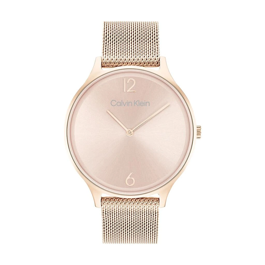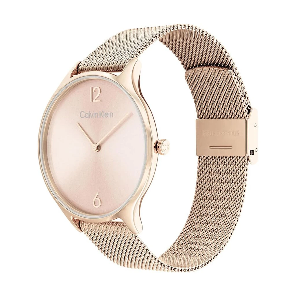 Montre Calvin Klein Timeless 2h Acier Rose Ronde Quartz 38mm Fond Rose Bracelet Maille Milanaise Acier Rose 25200002