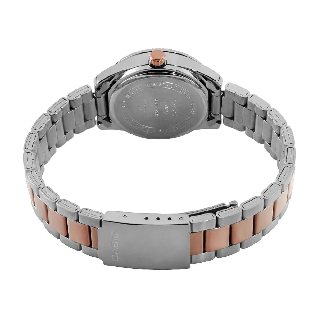 Montre Casio Collection Women Laiton Argenté Ronde Quartz 34.5mm Fond Vert Bracelet Acier Bicolore Ltp-1302prg-3avef