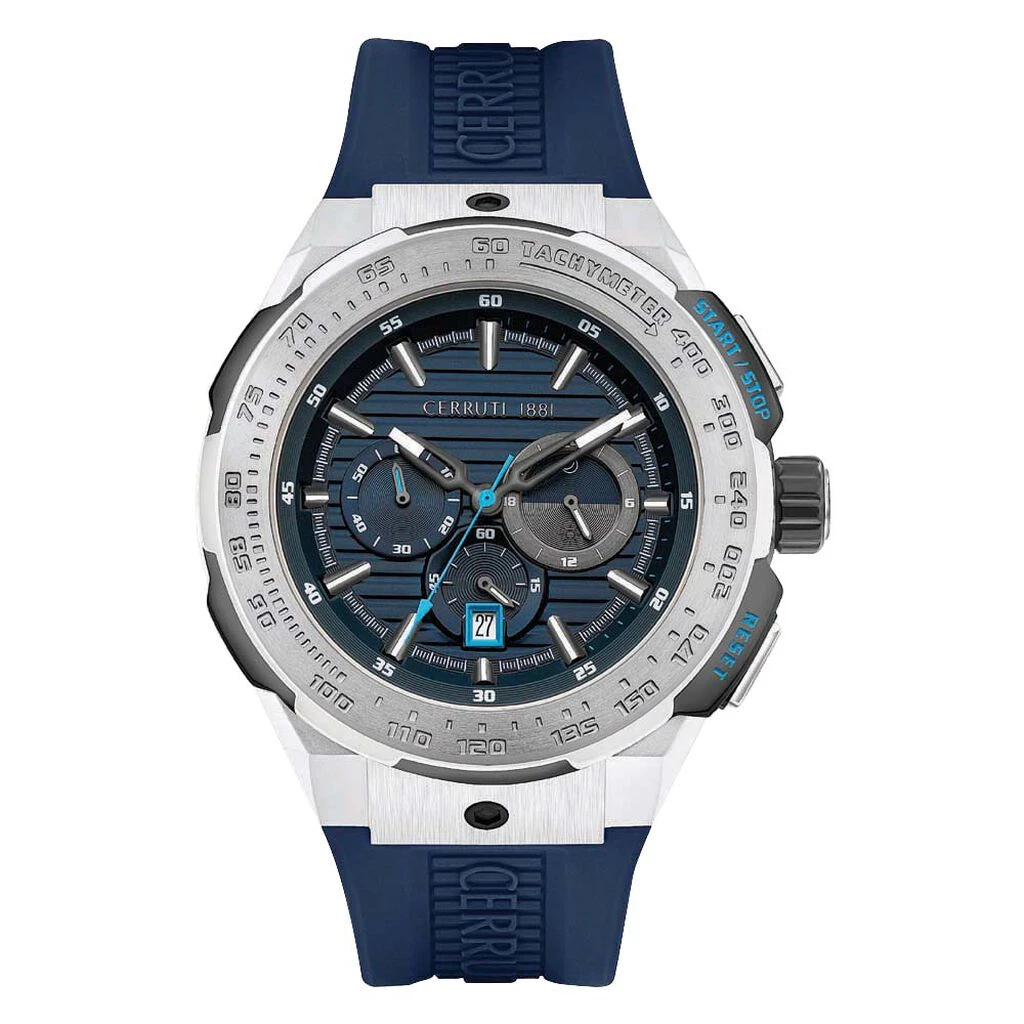 Montre Cerruti Ruscello Acier Blanc Ronde Quartz Chronographe 46mm Fond Noir Bracelet Caoutchouc Noir Cra30001