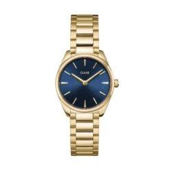 Montre Cluse Feroce Mini Acier Doré Ronde Quartz 25mm Fond Bleu Bracelet Acier Doré Cw11704