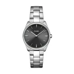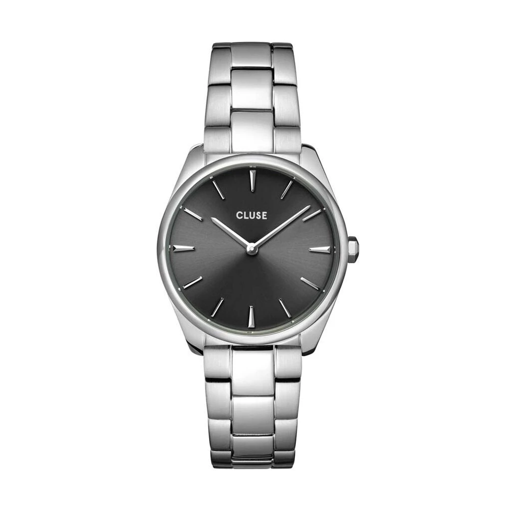 Montre Cluse Feroce Petite Acier Blanc Ronde Quartz 31.5mm Fond Gris Bracelet Acier Cw11202