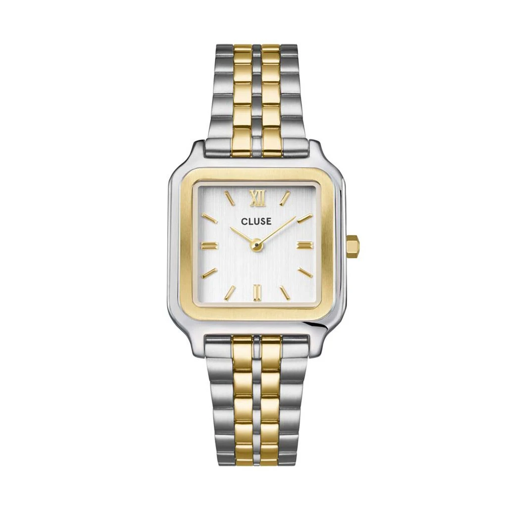 Montre Cluse Gracieuse Acier Bicolore Doré Blanc Carre Quartz 28mm Lunette Acier Doré Fond Blanc Bracelet Acier Bicolore Doré Blanc Cw11901