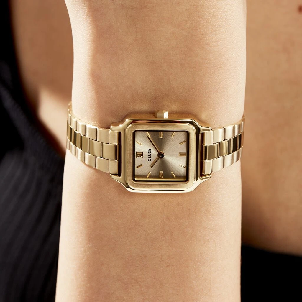 Montre Cluse Gracieuse Petite Acier Doré Carré Quartz 24mm Fond Champagne Bracelet Acier Doré Cw11802
