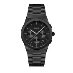 Montre Cluse Vigoureux Chrono Acier Noir Ronde Quartz Chronographe 40mm Fond Noir Lunette Noire Bracelet Acier Noir Cw20802