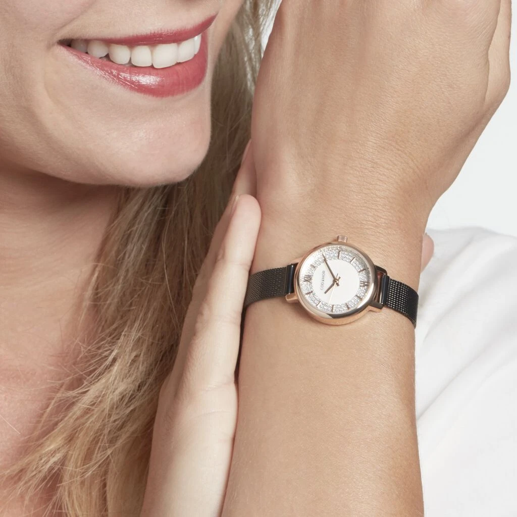 Montre Codhor Jeroma Alliage Doré Rose Ronde Quartz 27mm Fond Argenté Bracelet Milanais Acier Noir Wbj0085-005
