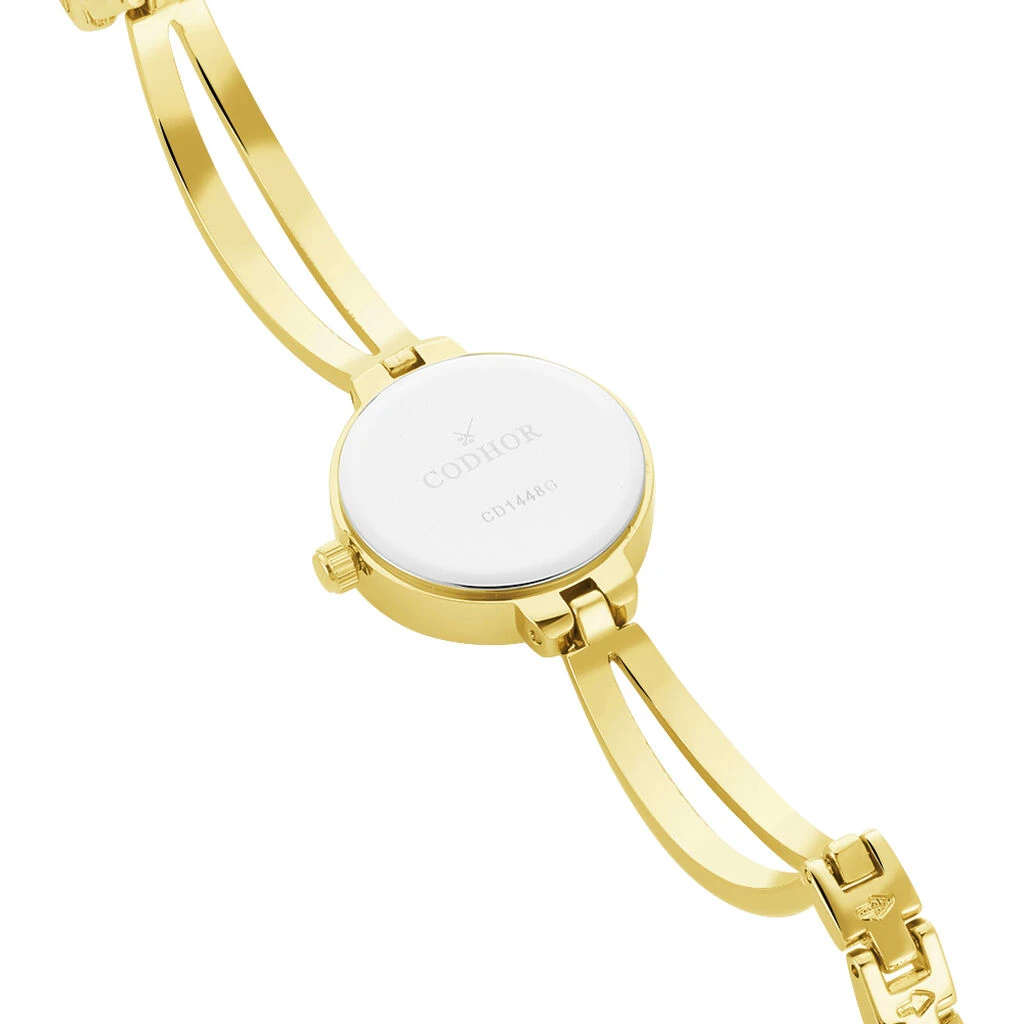 Montre Codhor Leila Métal Doré Ronde Quartz 22mm Fond Blanc Bracelet Métal Doré Cd1448g.w