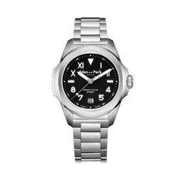 Montre Eden Park Sport Acier Argenté Ronde Quartz 41mm Fond Noir Bracelet Acier Argenté 10atm Ep12250b14