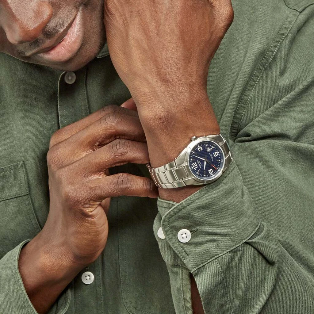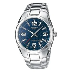 Montre Casio Edifice Acier Blanc Ronde Quartz 48.6mm Fond Bleu Bracelet Acier Argente Ef-125d-2aveg