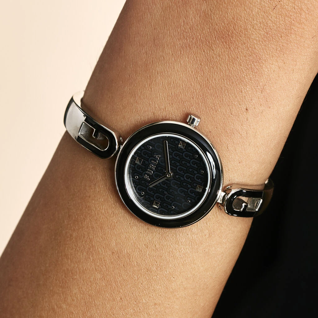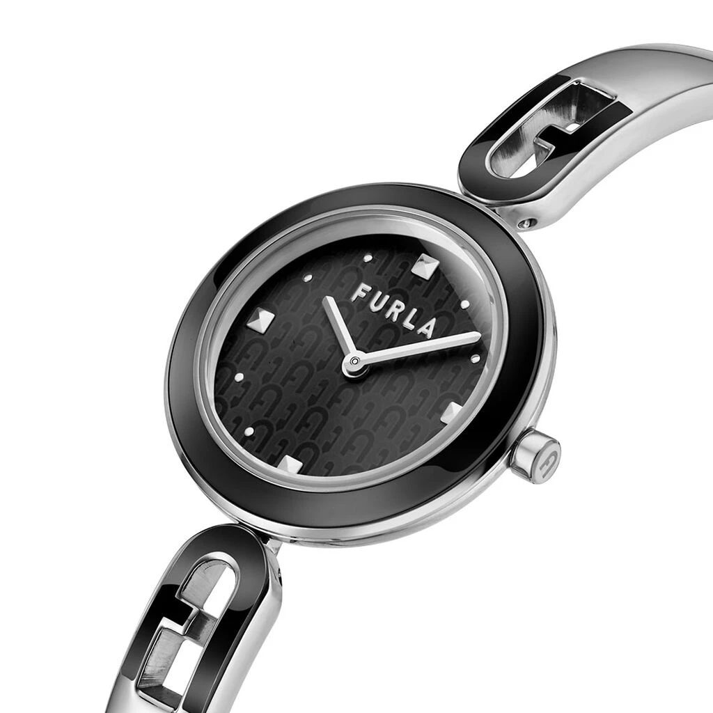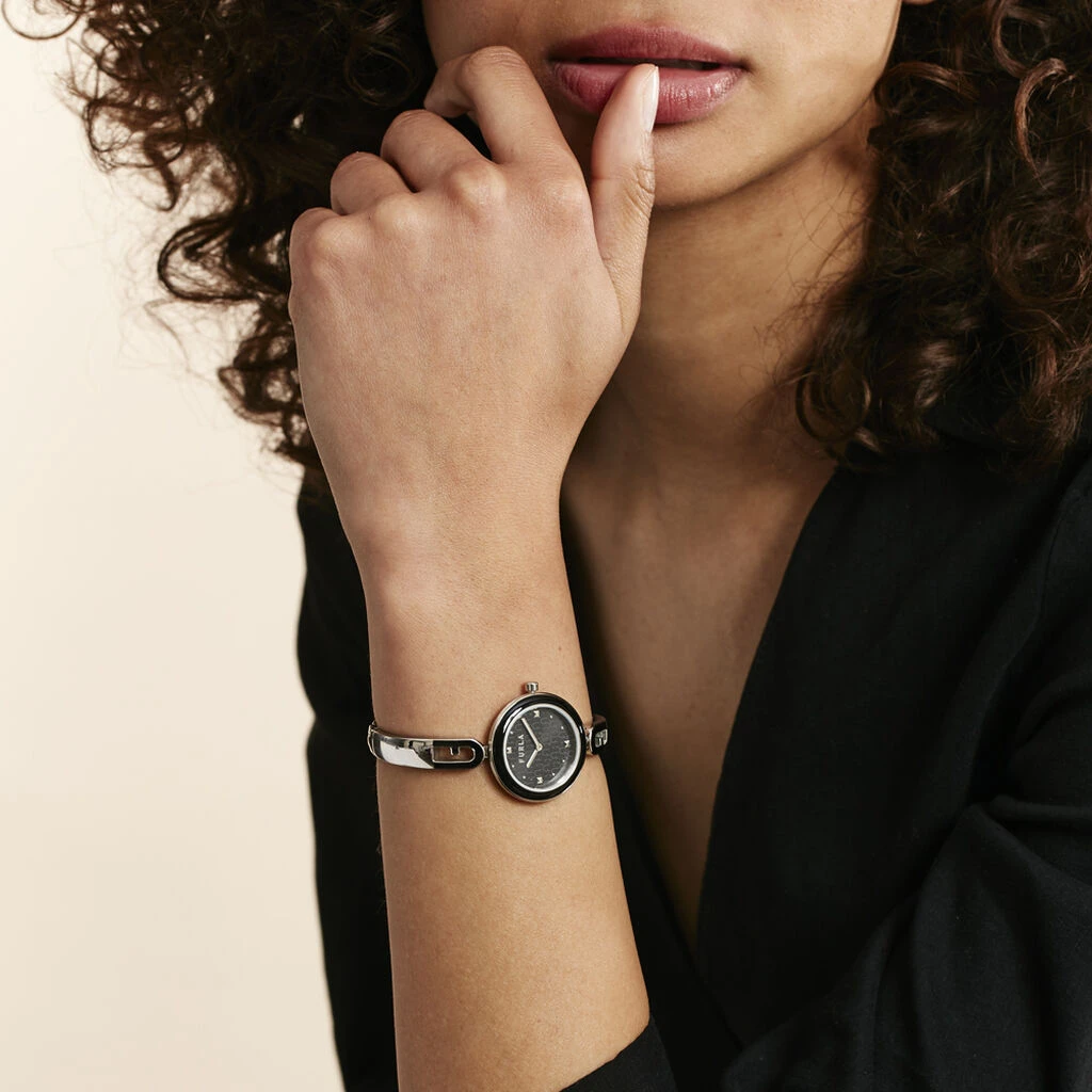 Montre Furla Bangle Acier Argenté Ronde Quartz 28mm Fond Noir Bracelet Acier Argenté Ww00010005l1