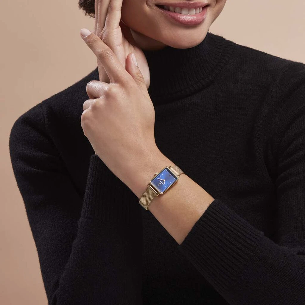 Montre Pierre Lannier Ariane Acier Doré Rectangulaire Quartz 21mm Fond Bleu Bracelet Acier Maille Milanaise Doré 057h562