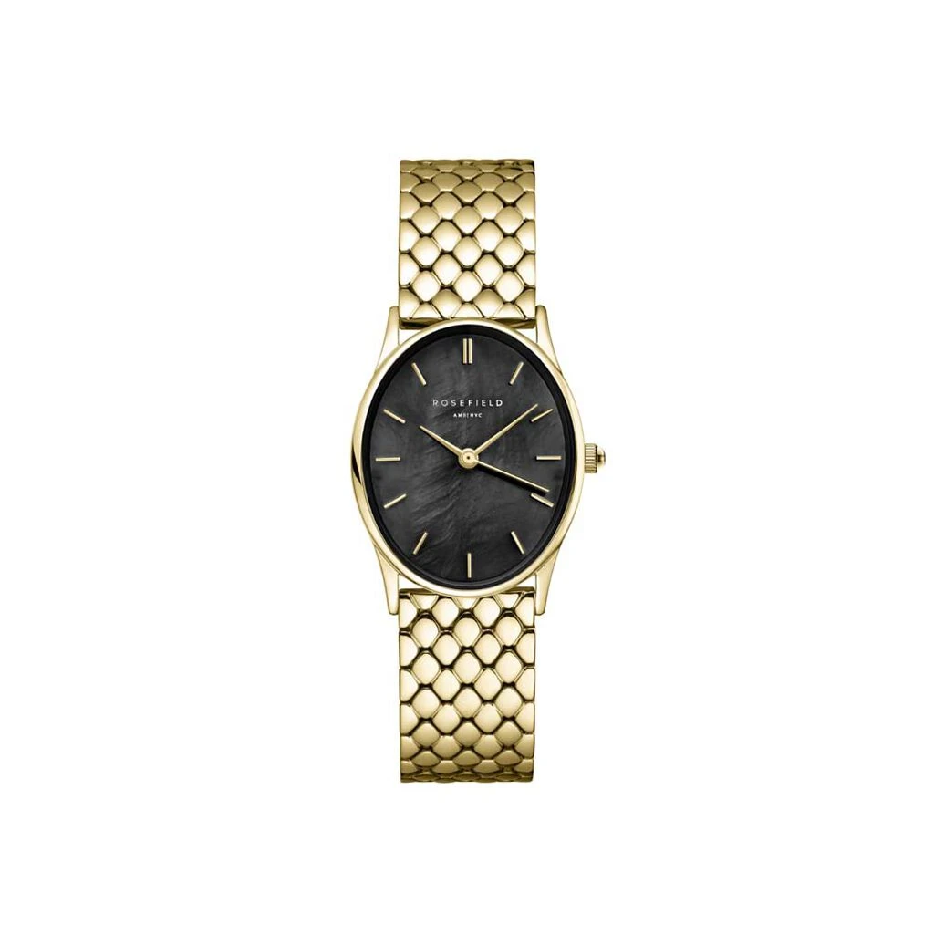Montre Rosefield Oval Acier Doré Ovale Quartz 24x29mm Fond Noir Bracelet Acier Doré Obgsg-ov14