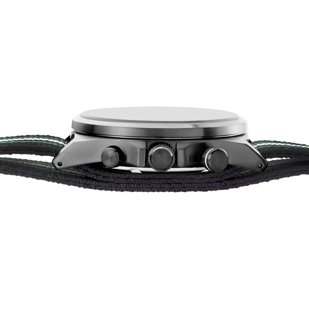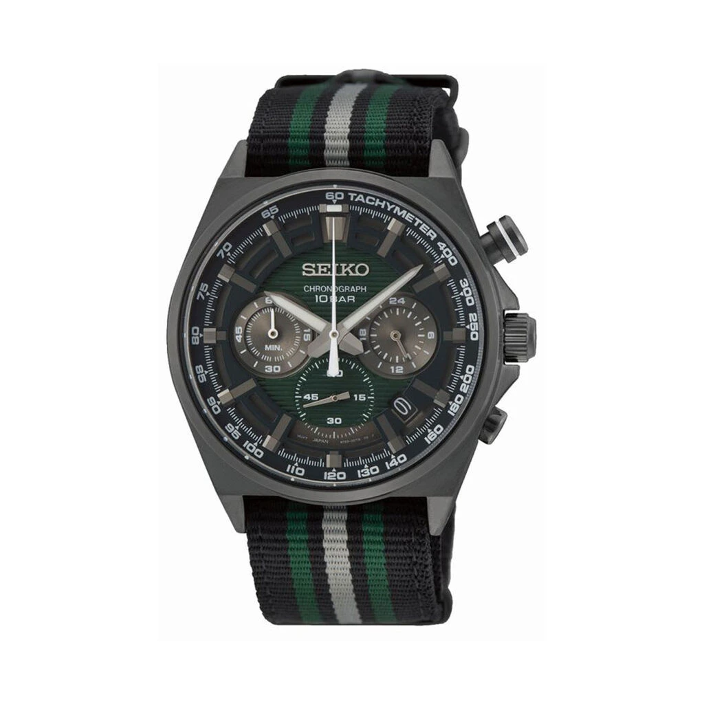 Montre Seiko Sports Acier Gris Ronde Quartz Chronographe 41mm Fond Noir Bracelet Nato Tricolore Ssb411p1