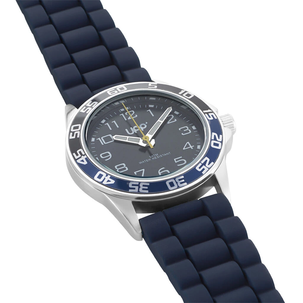 Montre Upp Axel Alliage Argenté Ronde Quartz 33mm Lunette Bleue Fond Bleu Bracelet Silicone Bleu Wba0134-005