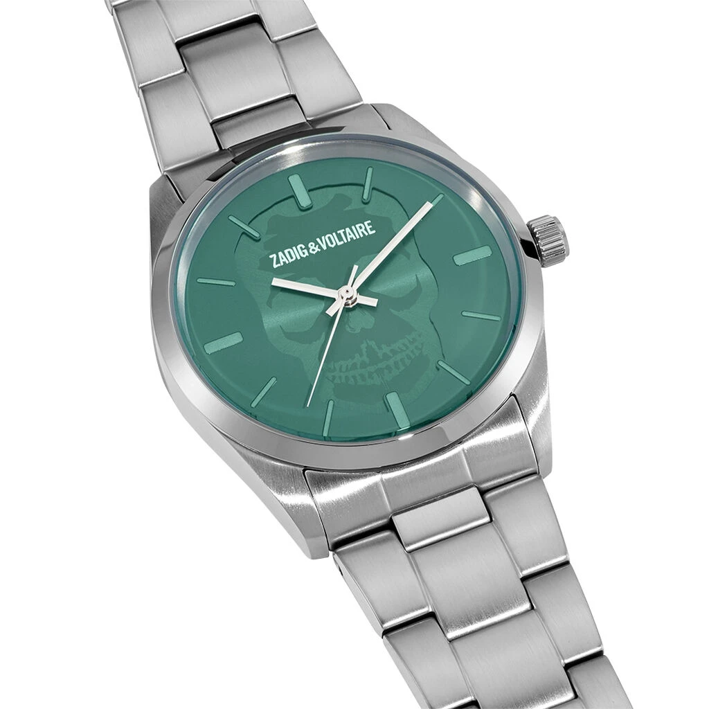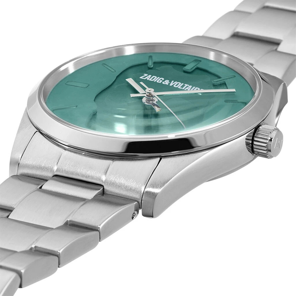 Montre Zadig & Voltaire Timeless Acier Argenté Ronde Quartz 39mm Fond Vert Bracelet Acier Argenté Zvt1115